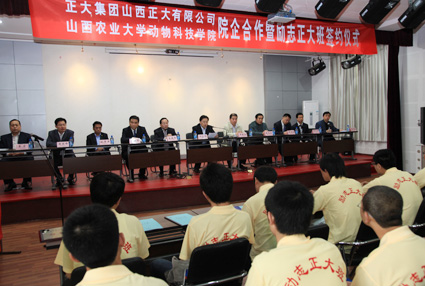 5月12日上午,动物科技学院与正大集团山西有限公司院企合作暨励志正大班签约仪式在工会小礼堂举行。