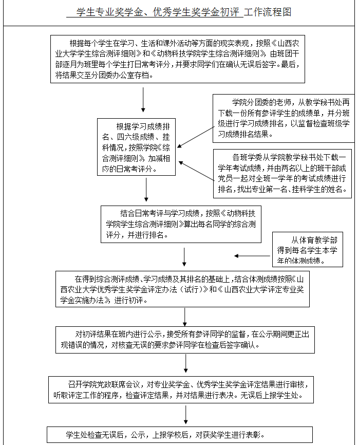 便民服务∣学生专业奖学金、优秀学生奖学金初评工作流程图