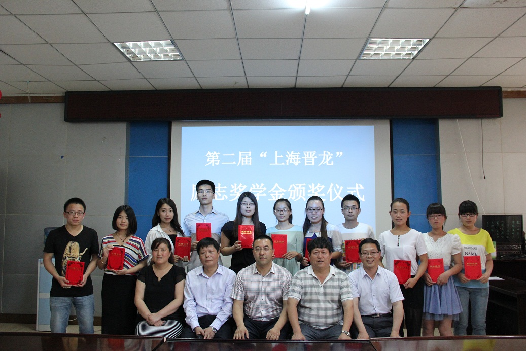 据悉,“上海晋龙励志奖学金”由上海晋龙生物科技有限公司出资设立,旨在资助品学兼优的学农学子顺利完成学业。该奖学金自2013年设立,目前第二届颁发。