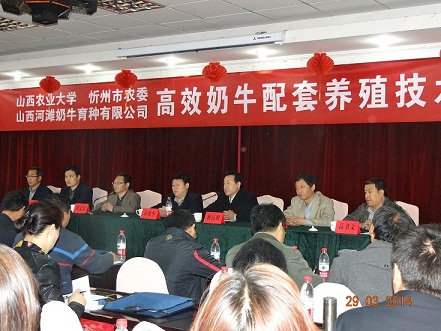 3月29日,我院与忻州市农委、山西河滩奶牛育种有限公司共同主办的山西省农业技术推广示范行动项目“高效奶牛配套养殖技术培训班”在忻州市举办。学院党委书记乔旭华、院长刘文忠、副院长高文俊、忻州市农委副主任姚高明等出席开班仪式。仪式由忻州市繁改站高书文站长主持。忻州市各县区畜牧技术人员、奶牛养殖场代表共130余人参加培训班。