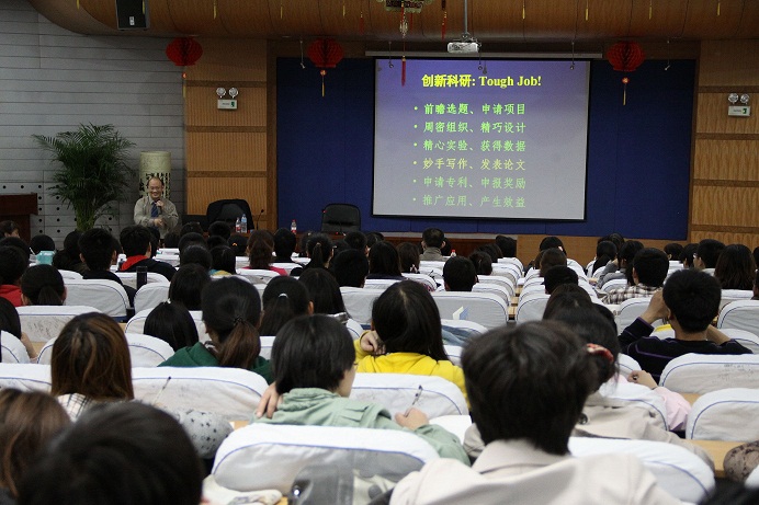 4月24日, 中国农业科学院兰州兽医研究所博士生导师朱兴全教授应“中心”邀请在博远堂为我校师生作了题为“创新科研及发表SCI论文的体会与技巧”的学术报告,全校8个涉农专业的300余名教师和研究生听取了报告。动科院院长李宏全教授主持了报告会。